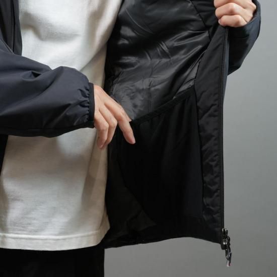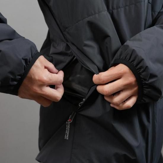 ジャケットの表地はGORE-TEX Windstopperを採用。しかし、製品の「より暖かく、より軽く、より手軽に」というコンセプトから、縫製部裏にあえてシームテープを貼っていません。ですので、製品自体はGORE-TEX基準での防水レベルには達してませんので、『GORE-TEX Windstopper™ 』という表記をしております。