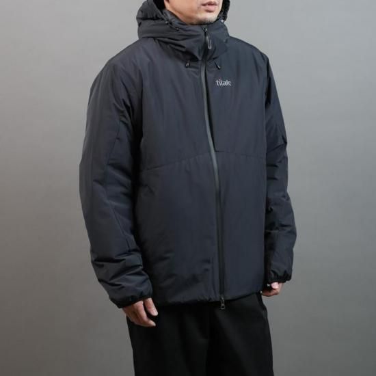 中綿には化繊綿『CLIMASHIELD®(クライマシールド)』を採用。化繊綿の中でも膨らみが非常に高く、軽量で暖かい。化繊綿の良いところは、家庭でも手入れしやすい事、そして毛抜けがほぼ無い事、そして濡れても保温力が落ちない、という点。化繊綿『CLIMASHIELD®(クライマシールド)』は「わた」状に毛羽だったシート状の生地です。ですので、家庭用洗濯機で洗っても「わた」が寄れる心配も無いですし、縫製部から「わた」が飛び出してくる心配もありません。また化繊綿は水分を吸収しないので、雨に濡れても保温性が急激に落ちる心配はありません。実際、どのレベルの保温性を求めるか、また活動状況にもよりますが、-30級の極寒地でない限りはスバルバードで十分。むしろ天然ダウンより手軽で優れた機能が多くあるので、ティラックは化繊綿をプッシュしております。腰裏に付属するメッシュポケットに収納可能。収納すれば枕サイズになるので、テントで寝る際や椅子の腰用クッションとしても重宝します。