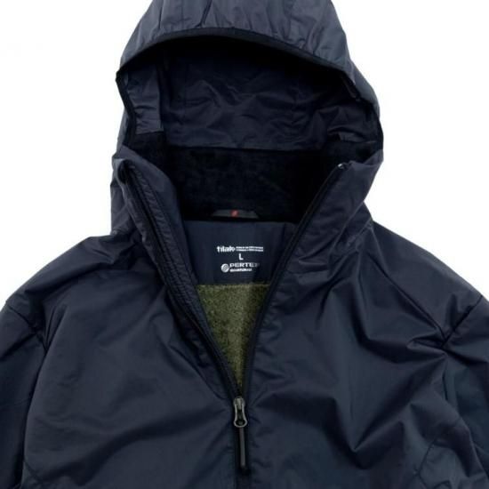 表生地には、防風・撥水性能に優れ、軽量な PERTEX quantum air(パーテックス・カンタム エア)を採用。
