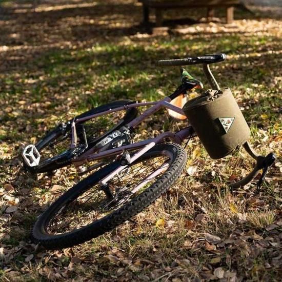 開閉用ドローコードは、ランドナーバッグのようにステムに引っ掛けて使うことも、バッグ背面のループに留めることも可能です。